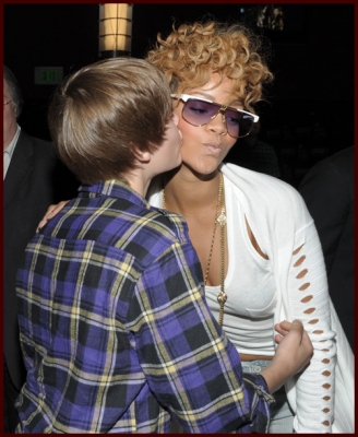 justin hasnt hit his growth spirt that much yet but its so cute looking at him trying to give rihanna a kiss